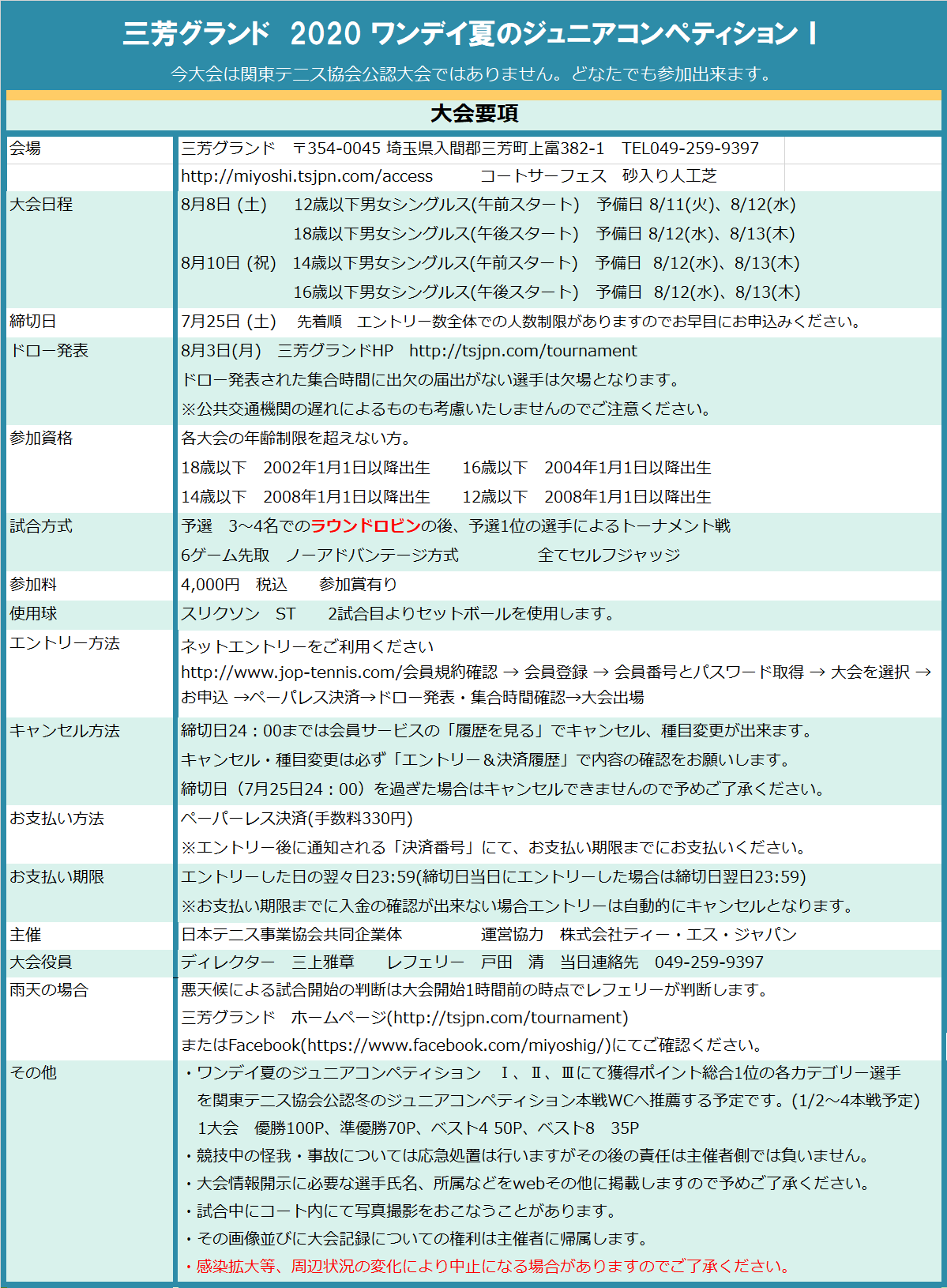 テニススクール・関東テニス協会承認ジュニア大会・ベテランJOP公認大会・ピックルボールクラブ