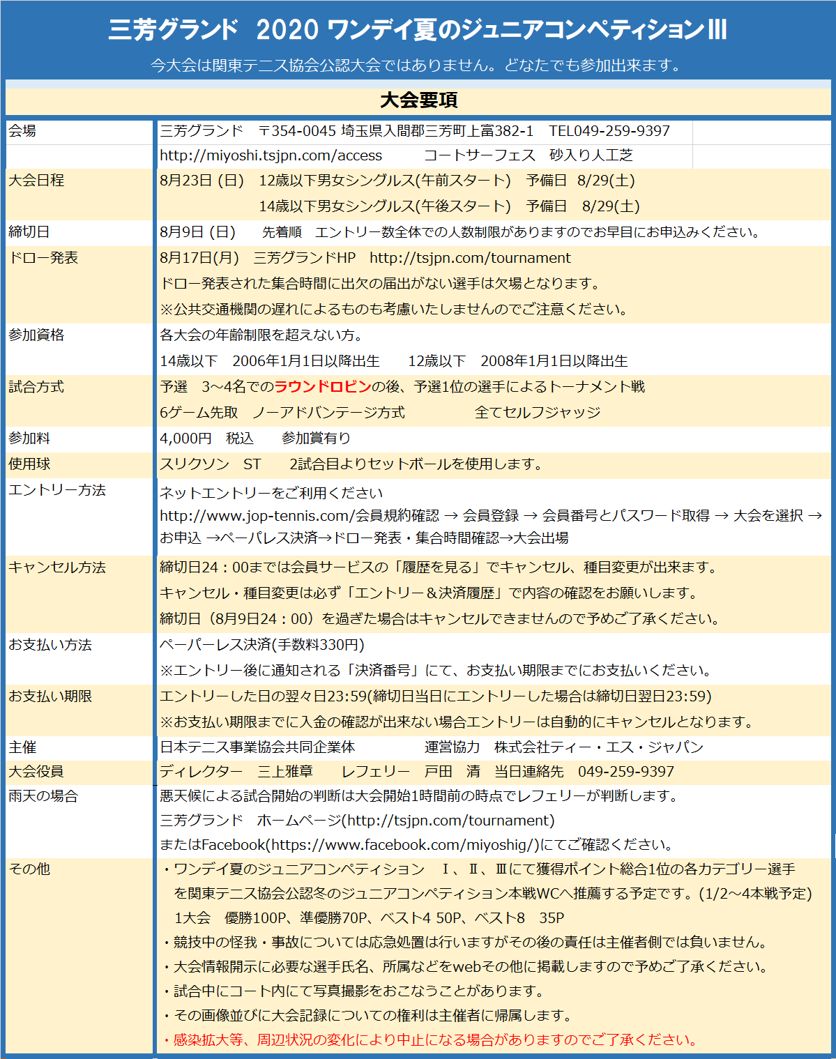 テニススクール・関東テニス協会承認ジュニア大会・ベテランJOP公認大会・ピックルボールクラブ